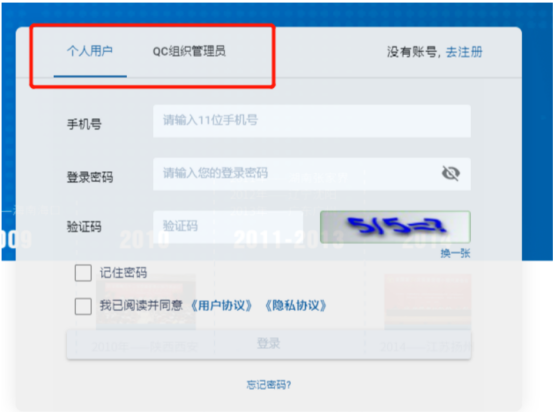 平台支持个人用户、QC 组织管理员两种角色注册个人用户注册后可加入所在企业组织,申报、维护自己相关的QC课题活动,QC组织管理员用户注册后可审批企业内课题申请,查看企业内课题活动。